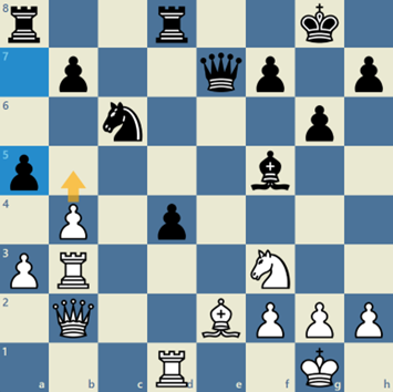 Anders (hvid) var sidste mand. Anders er kendt for at være god til at bruge sin tid. Jeg har desværre ikke analysen fra kampen, men jeg fik taget et billede af en stilling i slutspillet, hvor Anders forsøger at få sin d-bonde mod baglinjen.