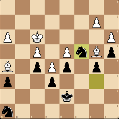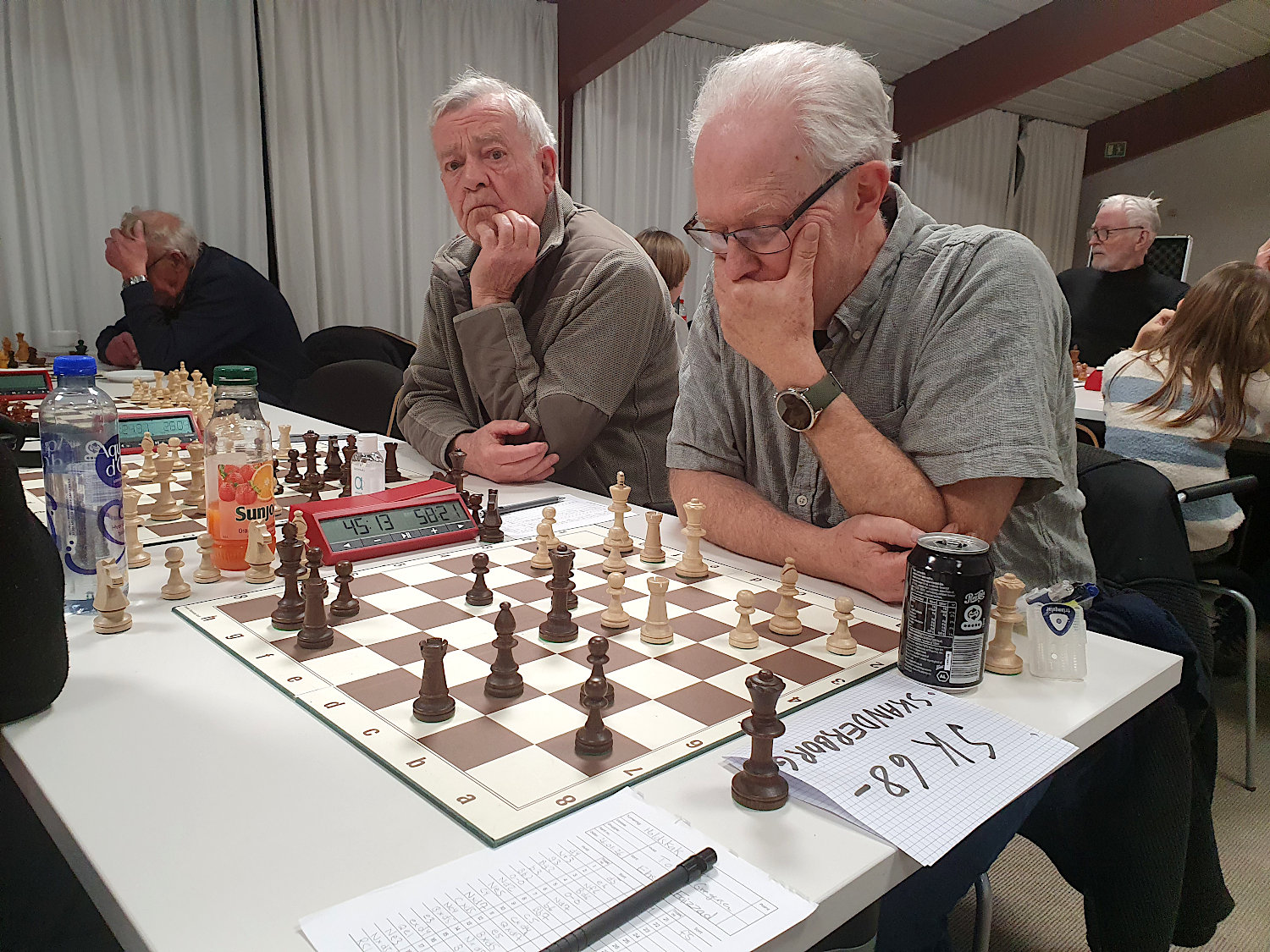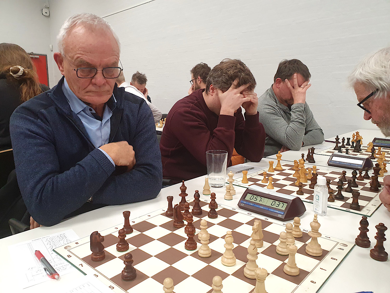Leif (sort) spillede et vanvittigt parti på bræt 8. Jeg har desværre ikke trækkene fra partiet. Leif var vist nede 3 bønder til sidst, hvor begge spillere hver havde en springer og x antal bønder. Leif leverede et kæmpe comeback og får en efter en nappet modstanderens bønder, så han til sidst kun står tilbage med en springer, og må tage til takke med en remis. Fremragende kæmpet, Leif.