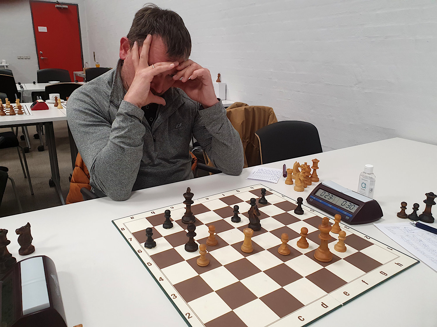 Christian (Hvid) spillede en god solid italiensk åbning, og fik sine brikker i de ønskede positioner. Han vinder ved træk 19. en springer for en bonde, og var allerede oppe med +5,1. Det betød også at h linjen blev åbnet op, og det blev Christian død senere i partiet. Modstanderen fik hurtigt sin dronning derover, og kort tid efter fulgte hans tårn og den sorte løber. Christian blev fanget i en uundgåelig mat på h linjen. Christian smed desværre et ellers stensikkert point.